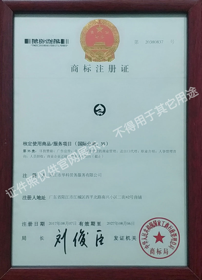 首批獲得廣東省人力資源廳、陽(yáng)江市勞動(dòng)和社會(huì)保障局頒發(fā)人力資源許可證的合法單位